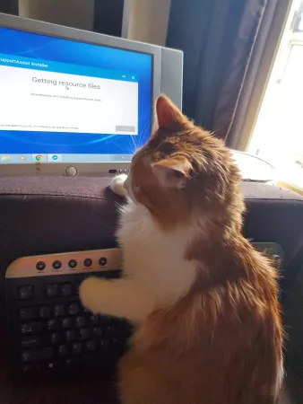 teenage tyrant with short bright orange and white hair weaving in and out of people trying for scraps and nudging his face on ankles and legs just itching for attention. I was asked again to take a cat and I couldn’t resist.